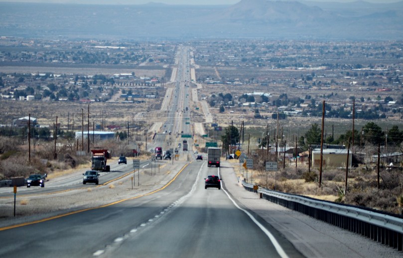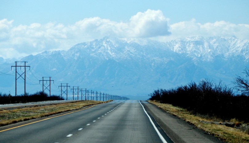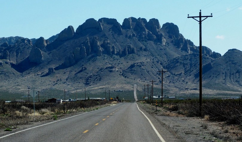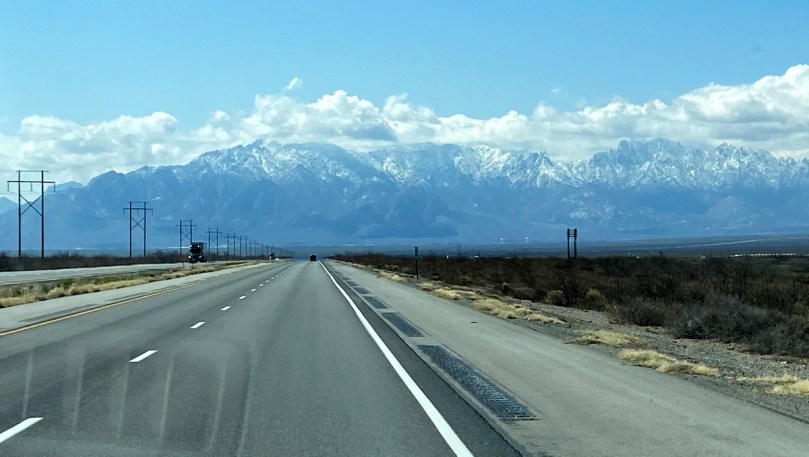 Schon von der Straße aus sind wir aufs Neue sehr beeindruckt von dem Gegensatz der wüstenartigen Ebene und der in der Ferne wie ein schlafender Riese auftauchenden Gebirgskette der Organ Mountains mit ihren Gipfeln, dem Organ Needle, Organ Peak und Baldy Peak durch die wir uns auf dem großzügig fast kurvenlos verlaufenden Hwy 70 weil eben ohne Serpentinen, teilweise im 4. Gang mit Warnblinkanlage hinüber „hecheln“.