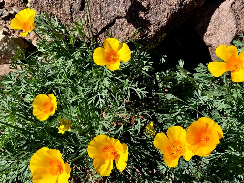 Es gibt soviel Schönes zu sehen, dass ich die zeitraubende Suche nach zwar nicht kostbaren, aber schön geformten Steinen ohne Hammer nach kurzer Zeit aufgebe. Ansonsten brauche ich nichts. Blühende Kakteen, Leben zum genauer Hinschauen, atemberaubende Landschaft mit Fernsicht pur…