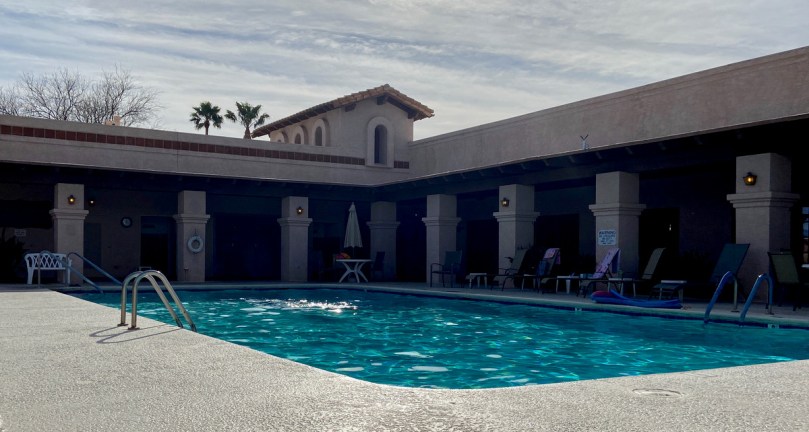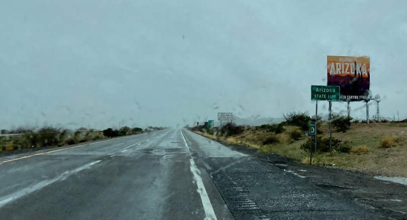Das haben wir auch noch nicht erlebt. Mitten in Arizona, wo Regen eigentlich ein Fremdwort ist, steht ausgerechnet heute das von oben ausgeschüttete Wasser wegen schlechter oder fehlender Entwässerung auf allen Straßen.