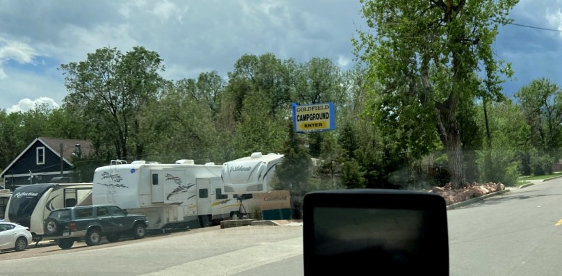 Uns interessiert nicht wirklich die Großstadt, sondern eher die historische Stadt und umliegende Kleinode. Die Campings rings herum sind alle im Verhältnis eher hochpreisig. Mit $45 finden wir Goldfield erträglich und buchen uns für drei Nächte ein, um Downtown und die Gardens of the Gods kennenzulernen.