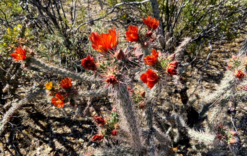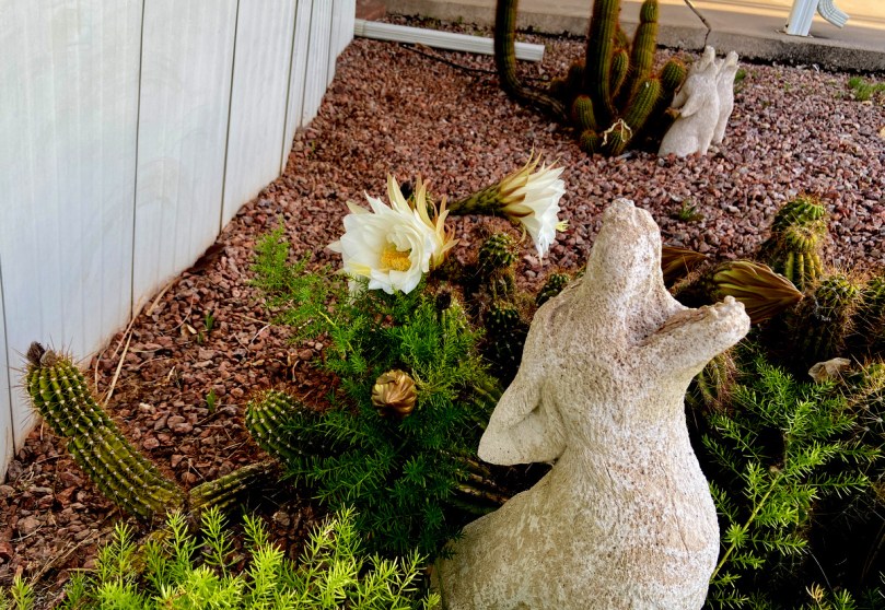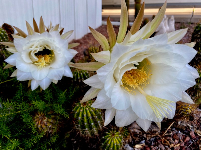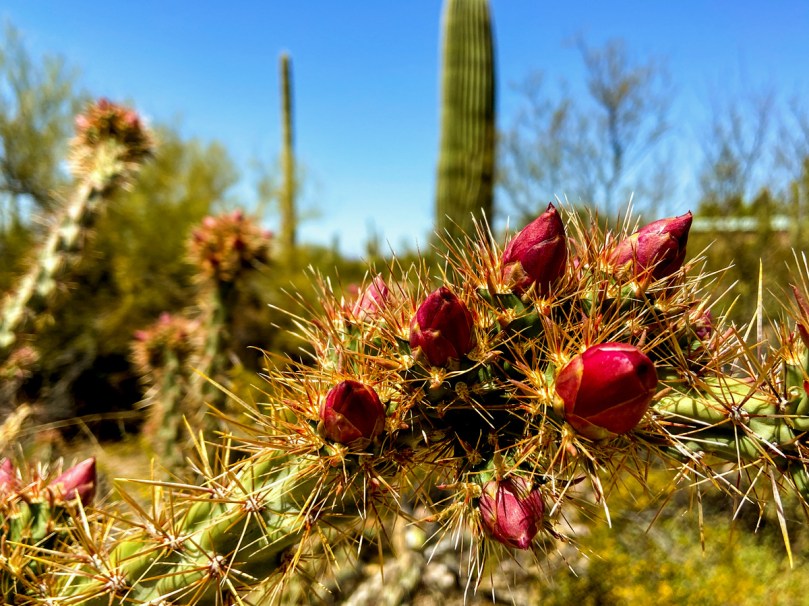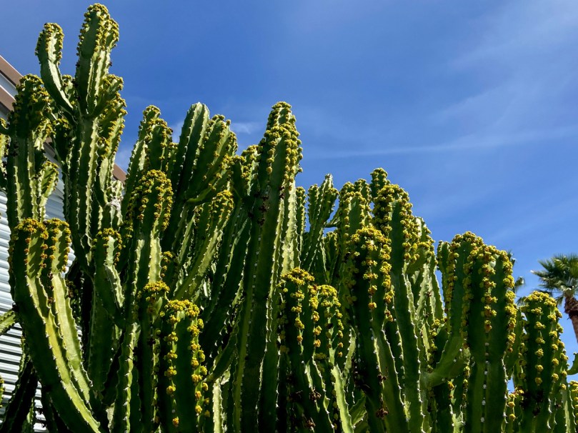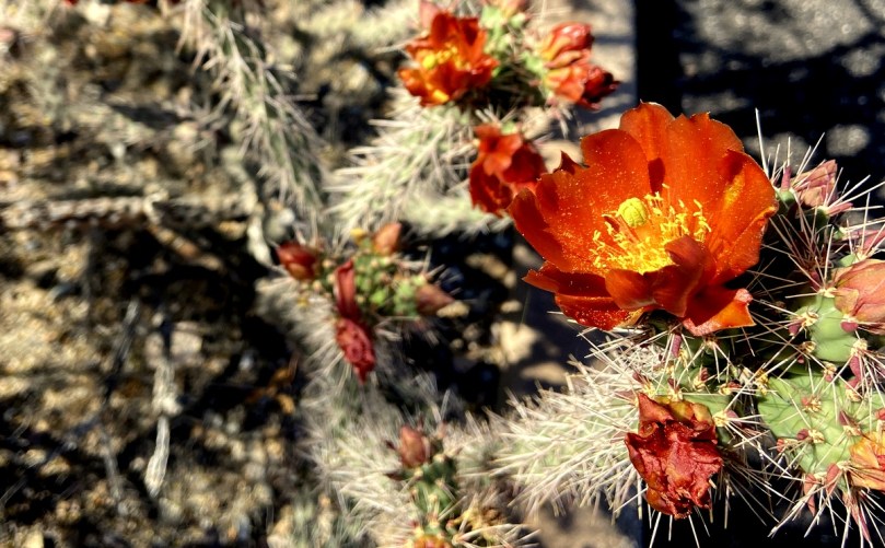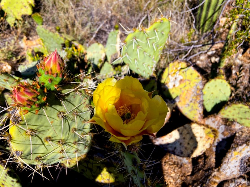 Weil wir zum letzten Mal hier gewesen sein werden, gibt uns der Morgen vor unserer Abfahrt die unwiederbringliche Gelegenheit, pralle lebenshungrige Blüten der aus dem Winterschlaf erwachenden Kakteen fotografisch mitzunehmen.
