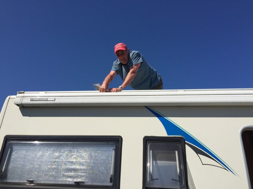– Um den Reifendruck auch unabhängig von 500 Meilen auseinander liegenden Tankstellen selbstständig kontrollieren und aktualisieren zu können, möchte ich noch gern einen 12 V Kompressor kaufen. Mal sehen, ob sie den von Michelin vorrätig haben, den ich im Internet gesehen habe. (Oder ist das Quatsch und wir haben gar keinen Platz dafür?