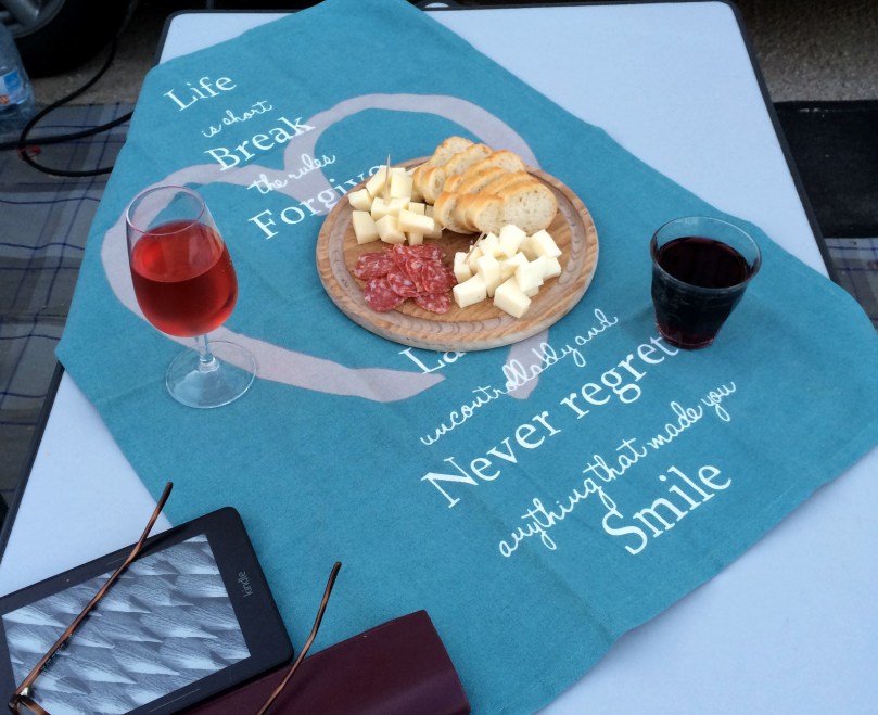Ein wunderschönes Frühstück mit unseren mitgebrachten Köstlichkeiten und frischen, noch warmen Flutes, die Erna und Manfred vom Bäcker im Dorf mitgebracht haben.