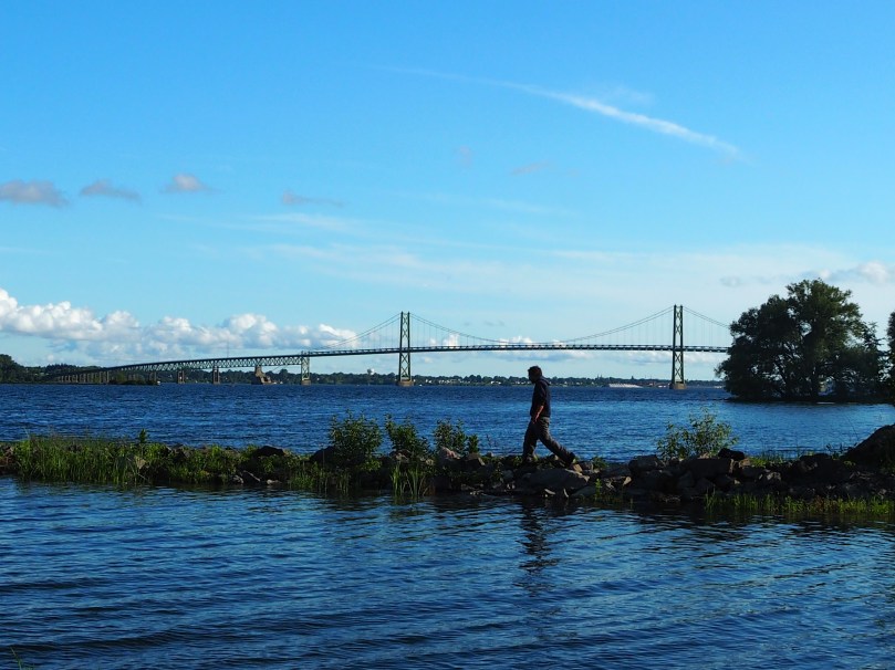 Der St. Lorenz Strom begleitet uns noch immer und zwar jetzt, wo wir weiter gen Südwesten fahren, auf der westlichen Seite und wir haben damit auch die gern in Anspruch genommene Möglichkeit, auf der „anderen Seite“ der Stadt, dort wo es ruhig zugeht, einen Stellplatz zu finden.